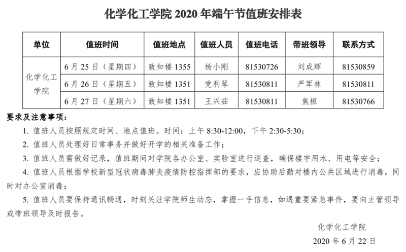 拉斯维加斯娱乐城官网 2020年端午节值班安排表