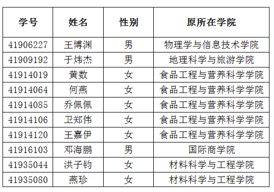 根据《拉斯维加斯娱乐城官网 本科非师范专业大类招生培养改革方案(试行)》、《拉斯维加斯娱乐城官网 2019级本科非师范和普通师范生专业分流实施办法》和《拉斯维加斯娱乐城官网 2019级专业大类分流考核方案》,拉斯维加斯娱乐城官网 对2019级申请转入化学类的非师范专业学生进行综合考核。现有10名学生通过考核,现将学生名单公示如下: