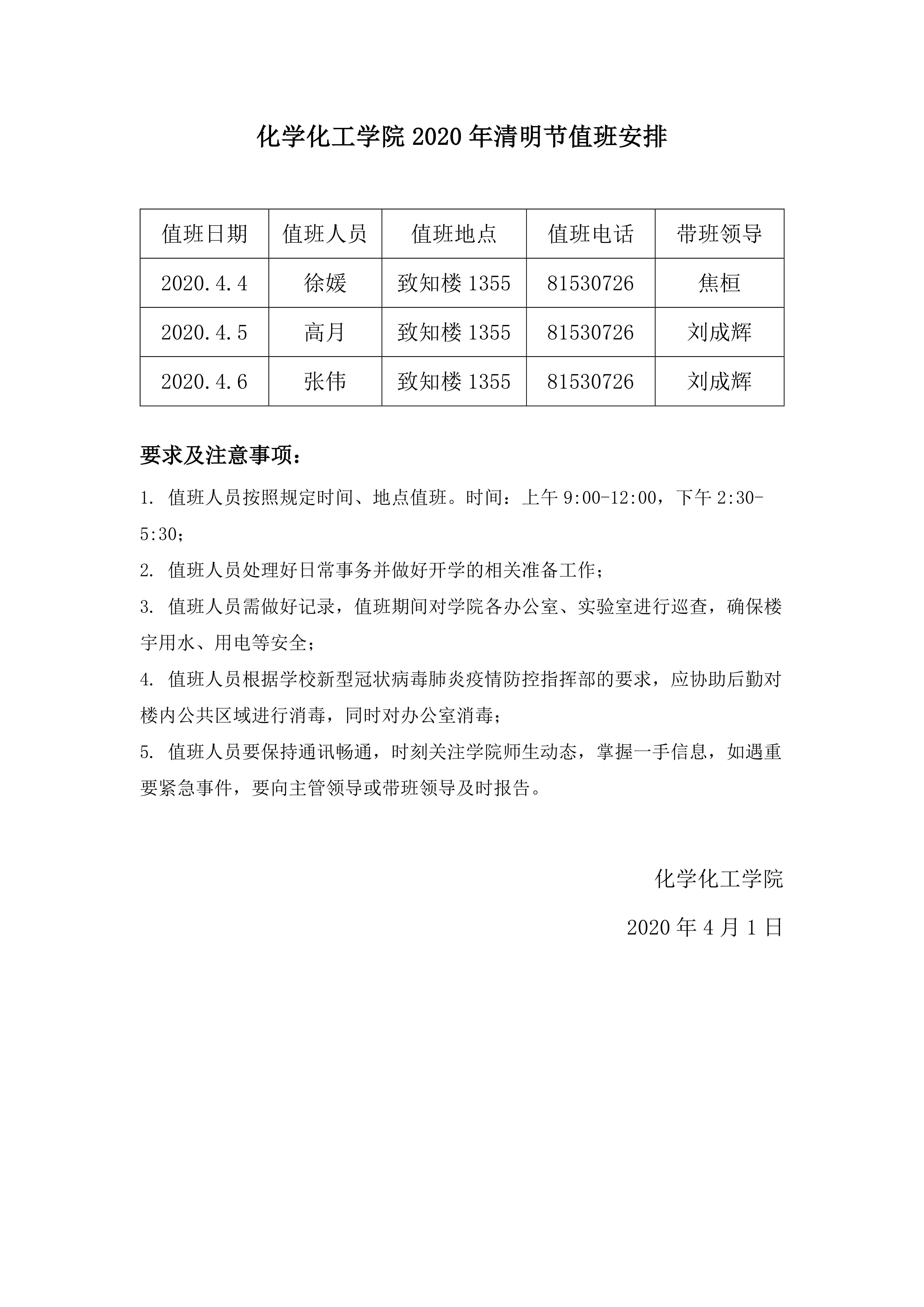 拉斯维加斯娱乐城官网 2020年清明节值班安排