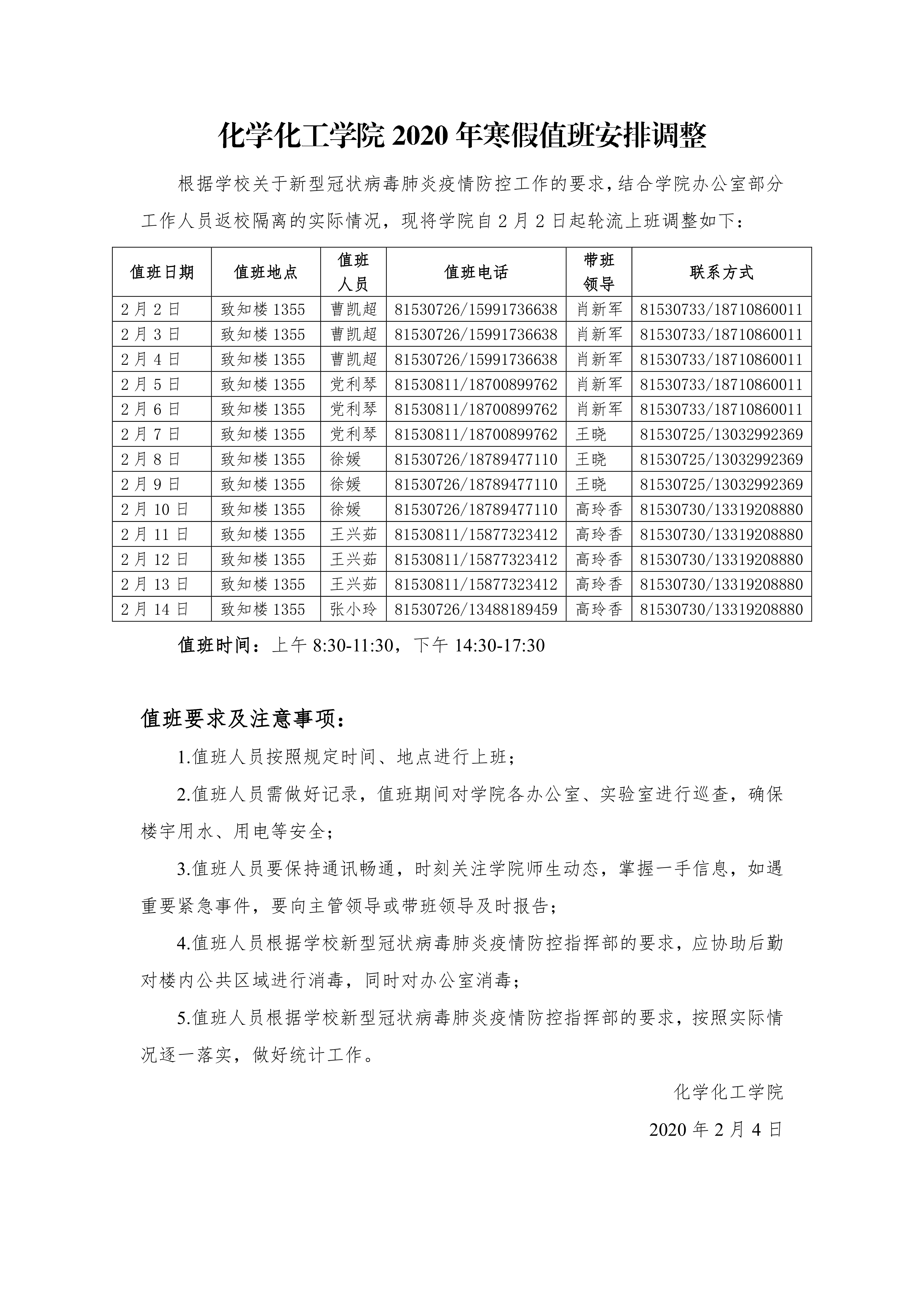 拉斯维加斯娱乐城官网 2020年寒假值班安排调整