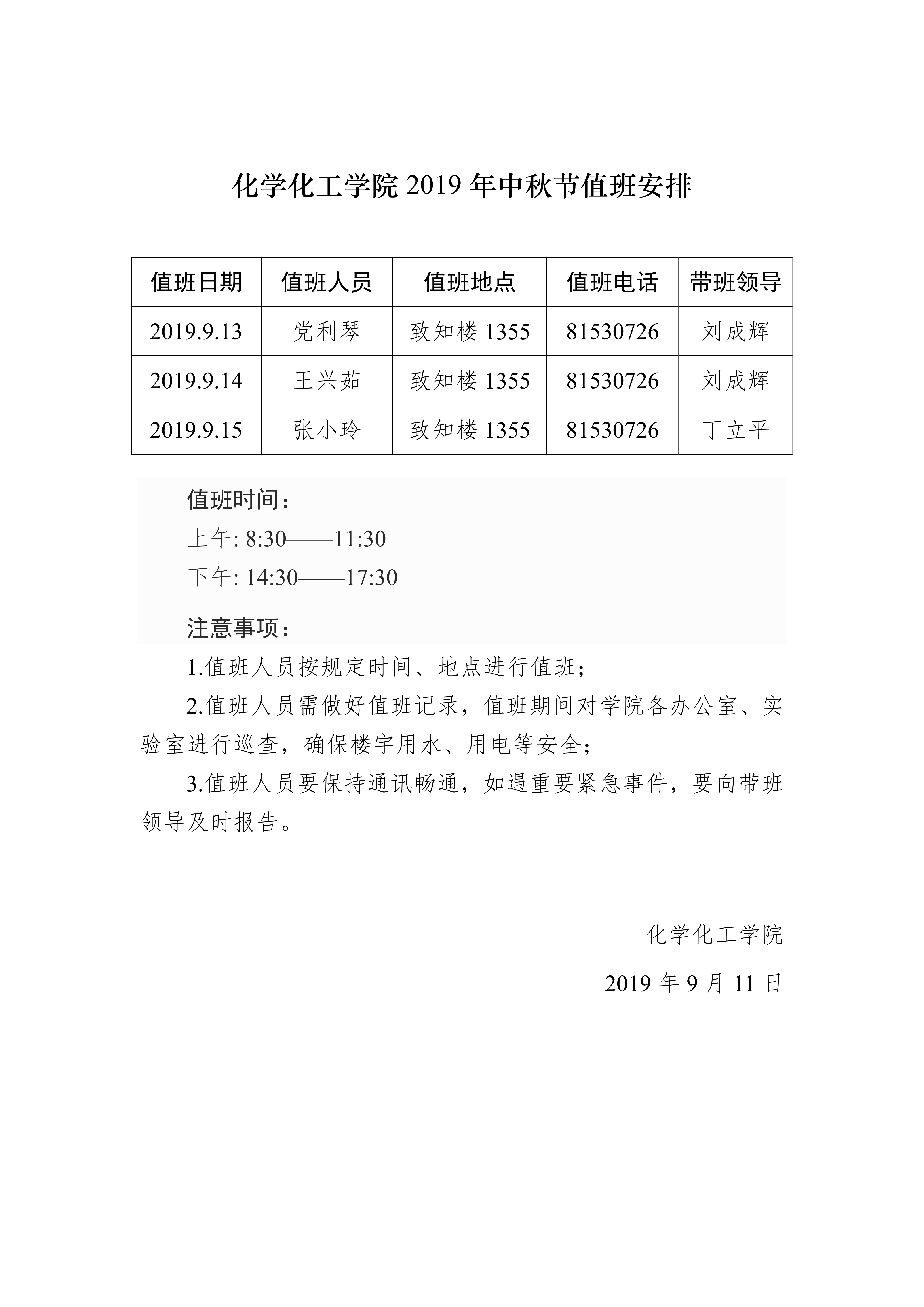 拉斯维加斯娱乐城官网 2019年中秋节值班安排