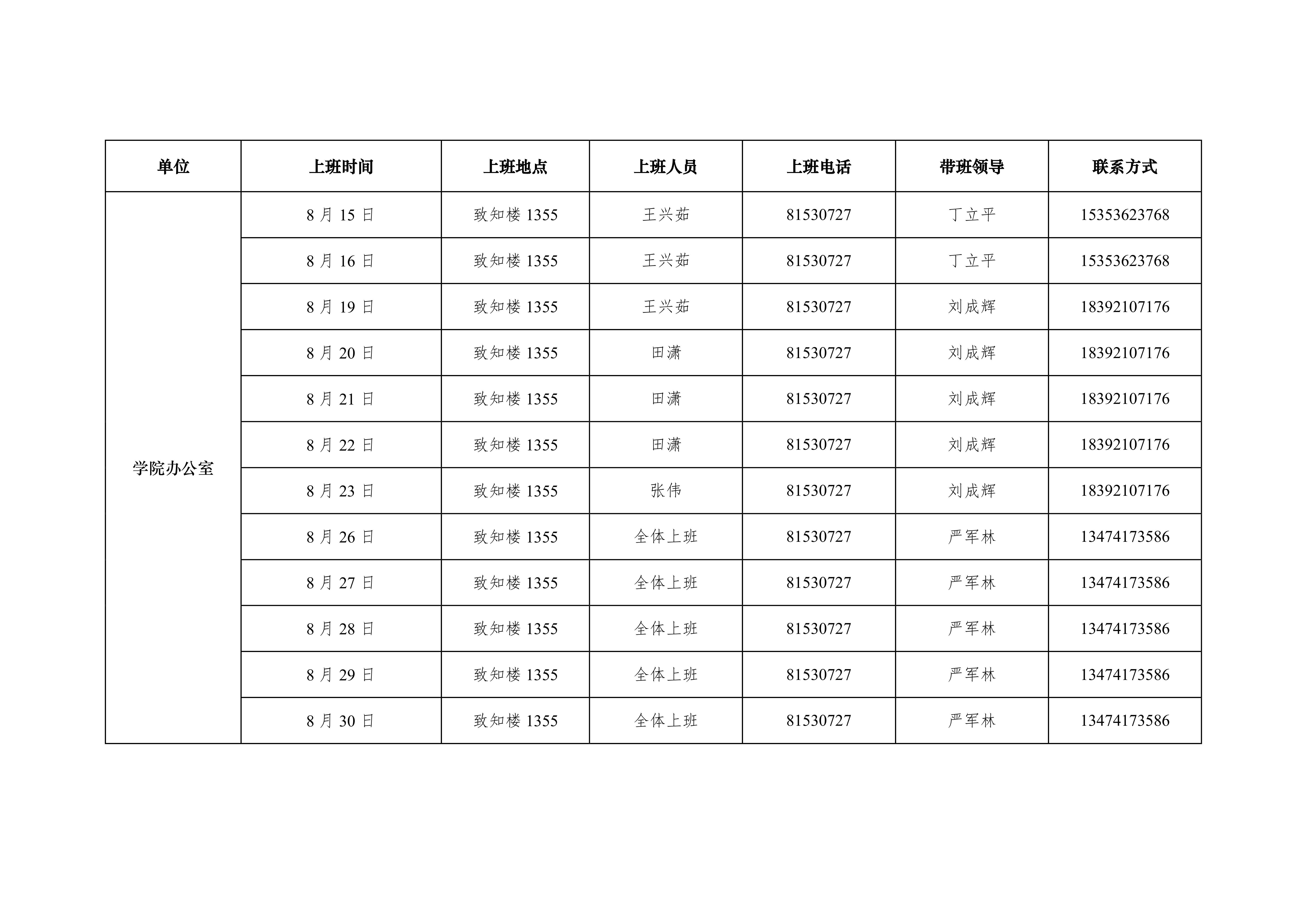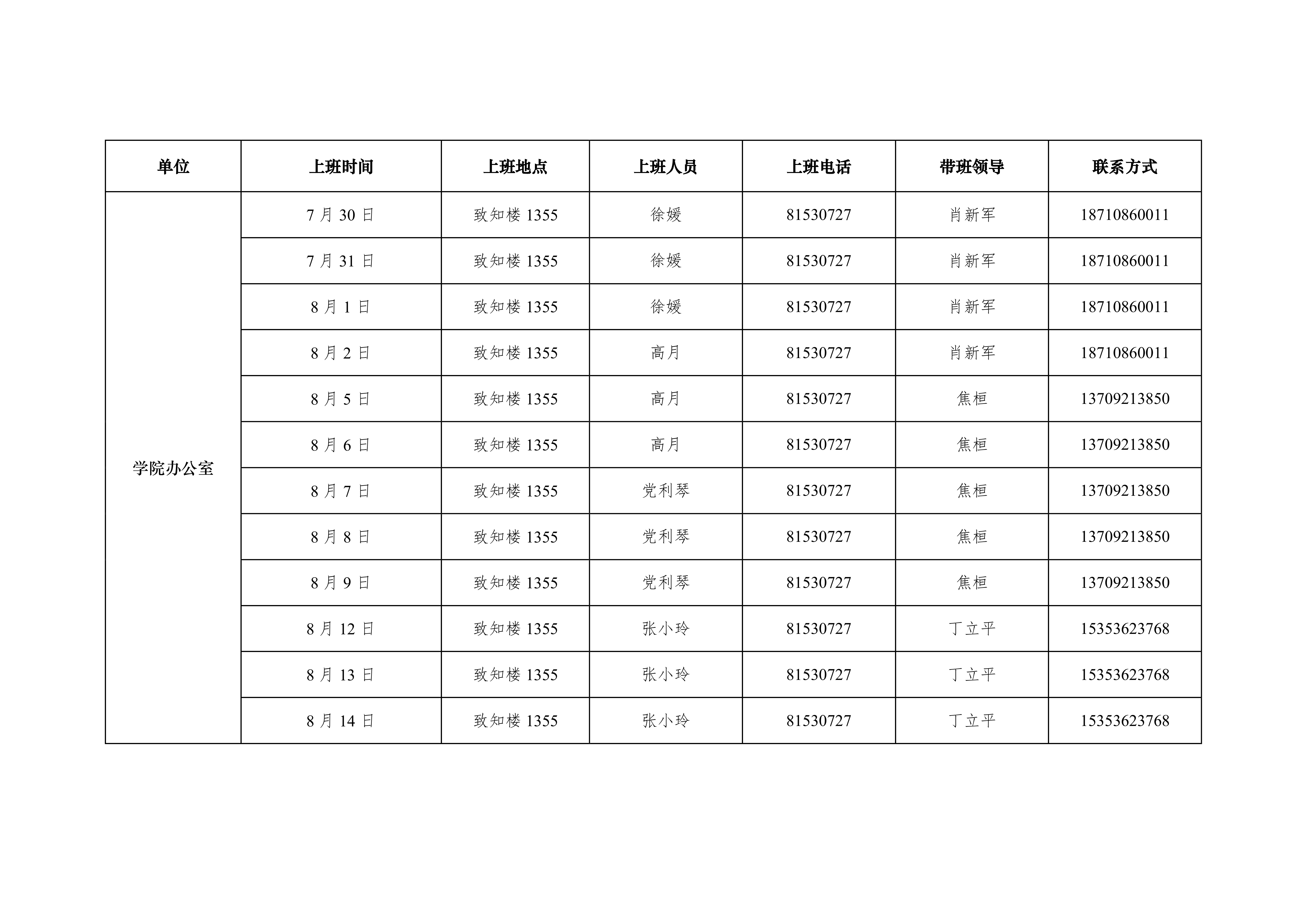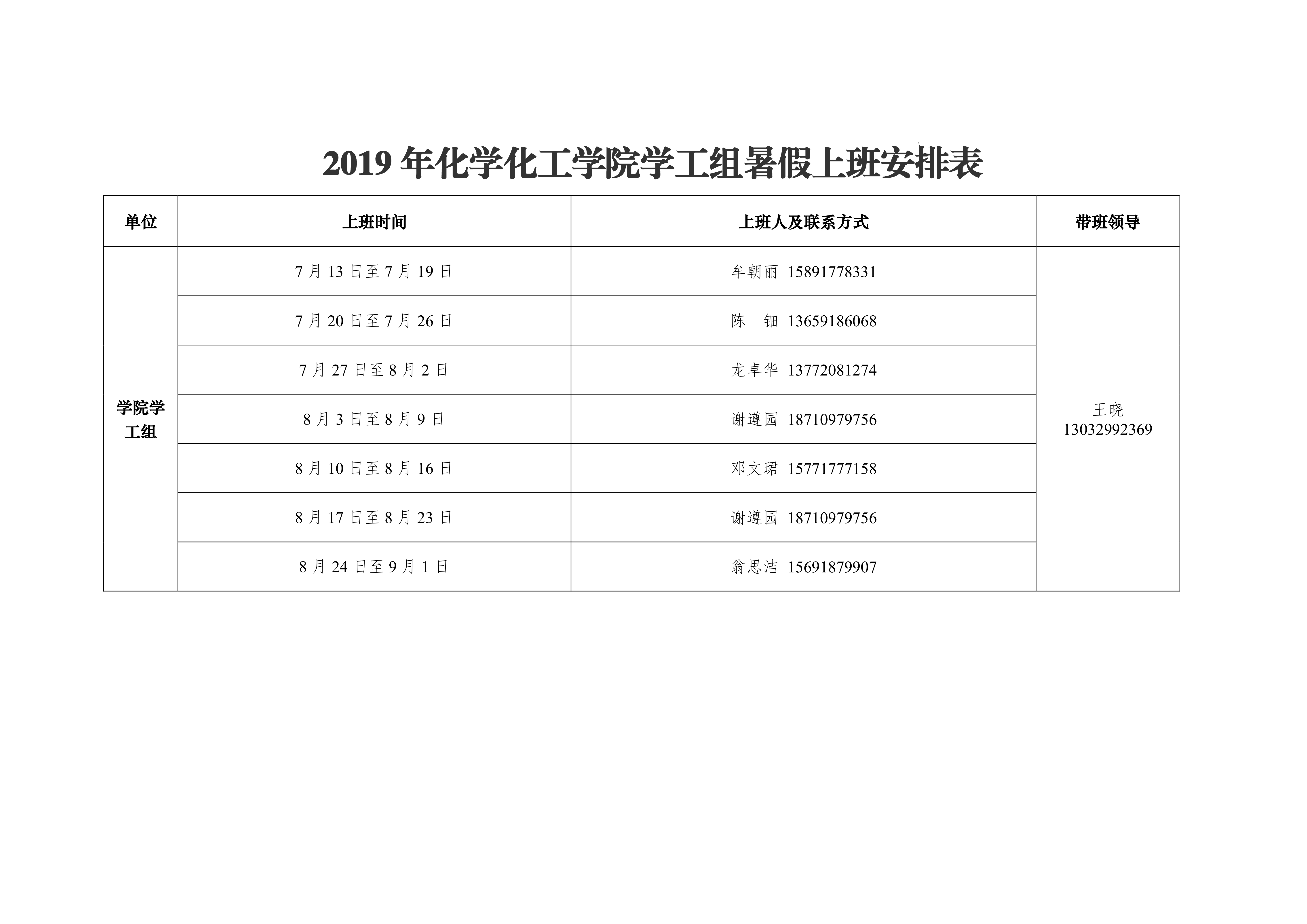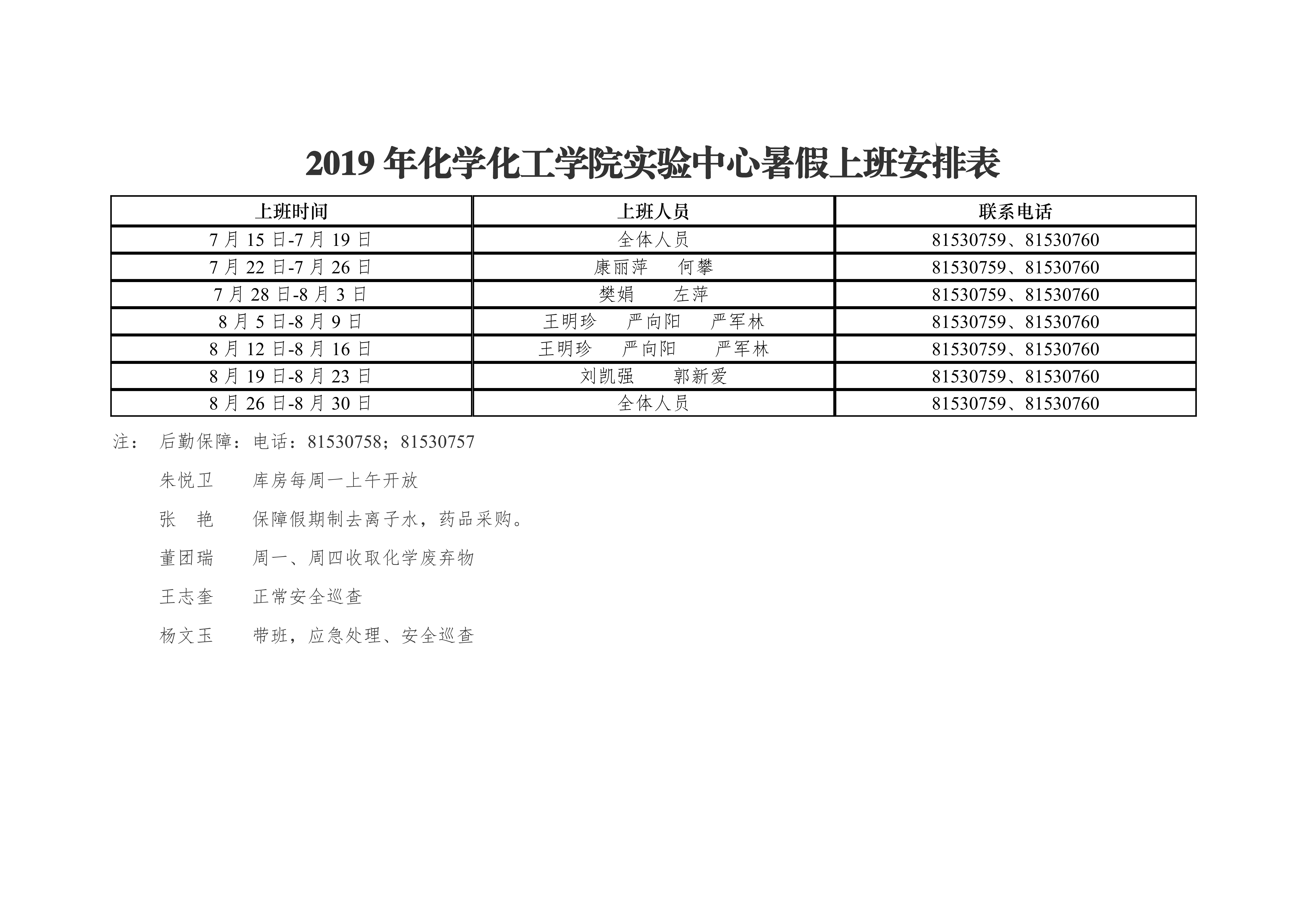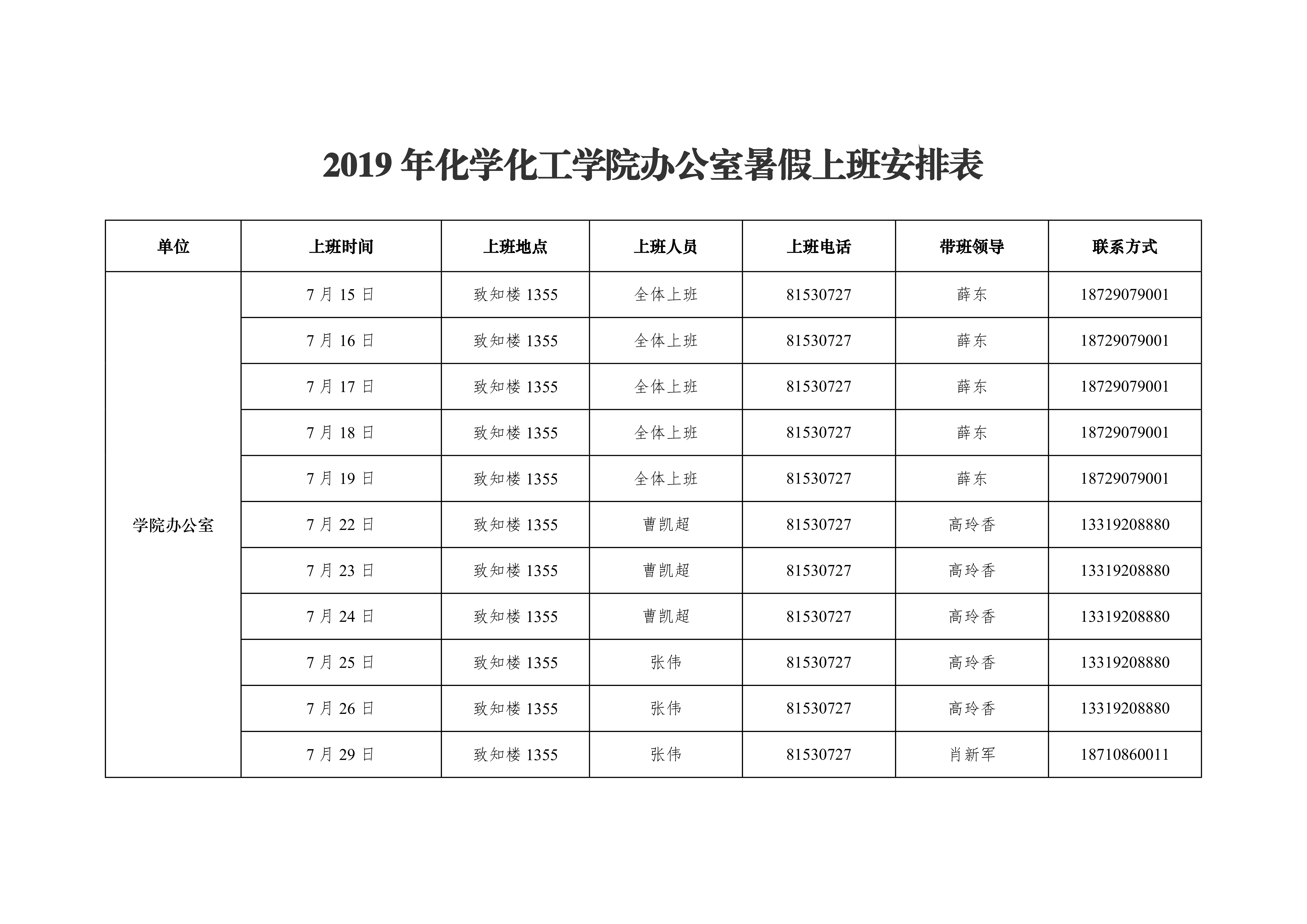 2019年拉斯维加斯娱乐城官网 办公室暑假上班安排表