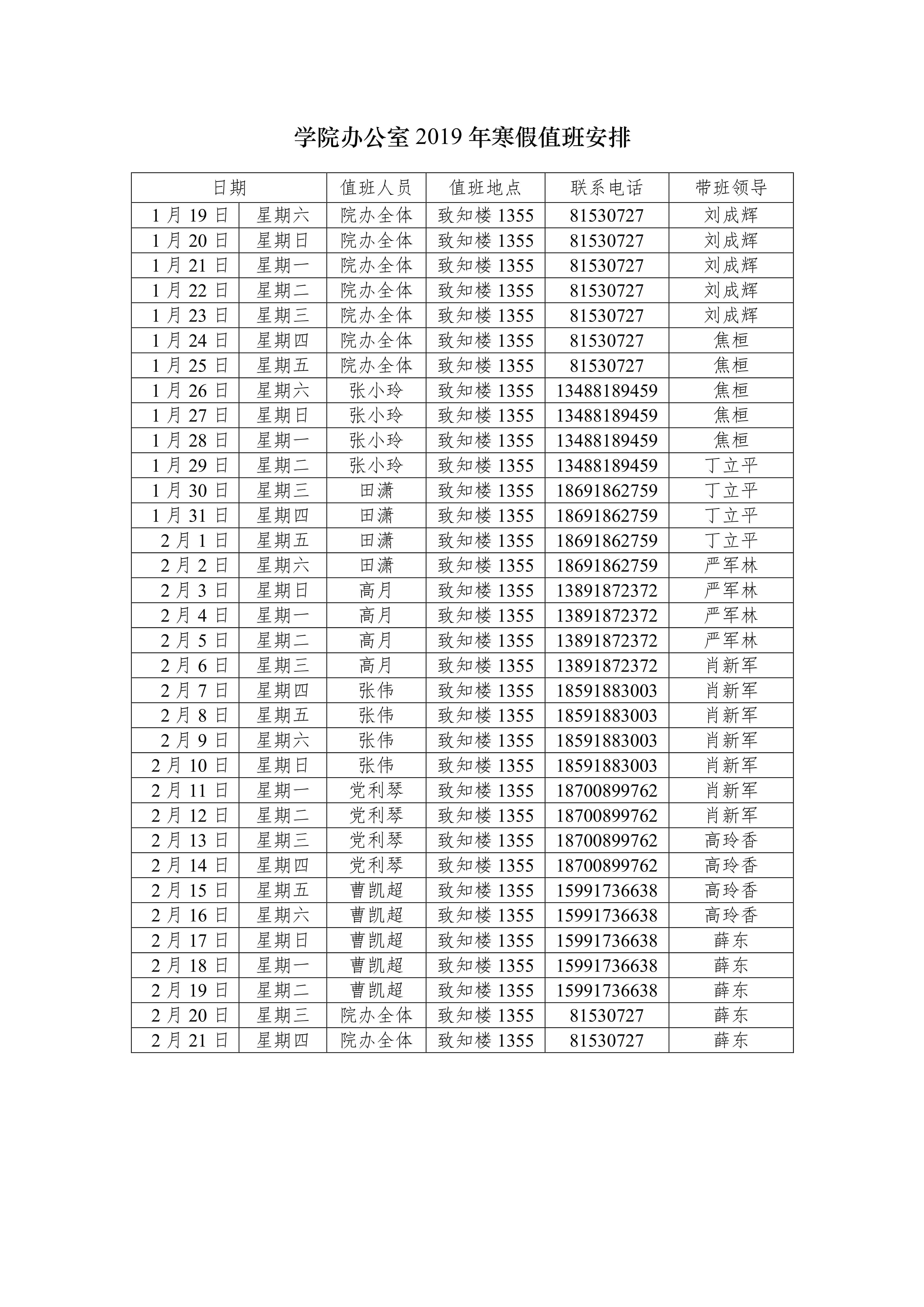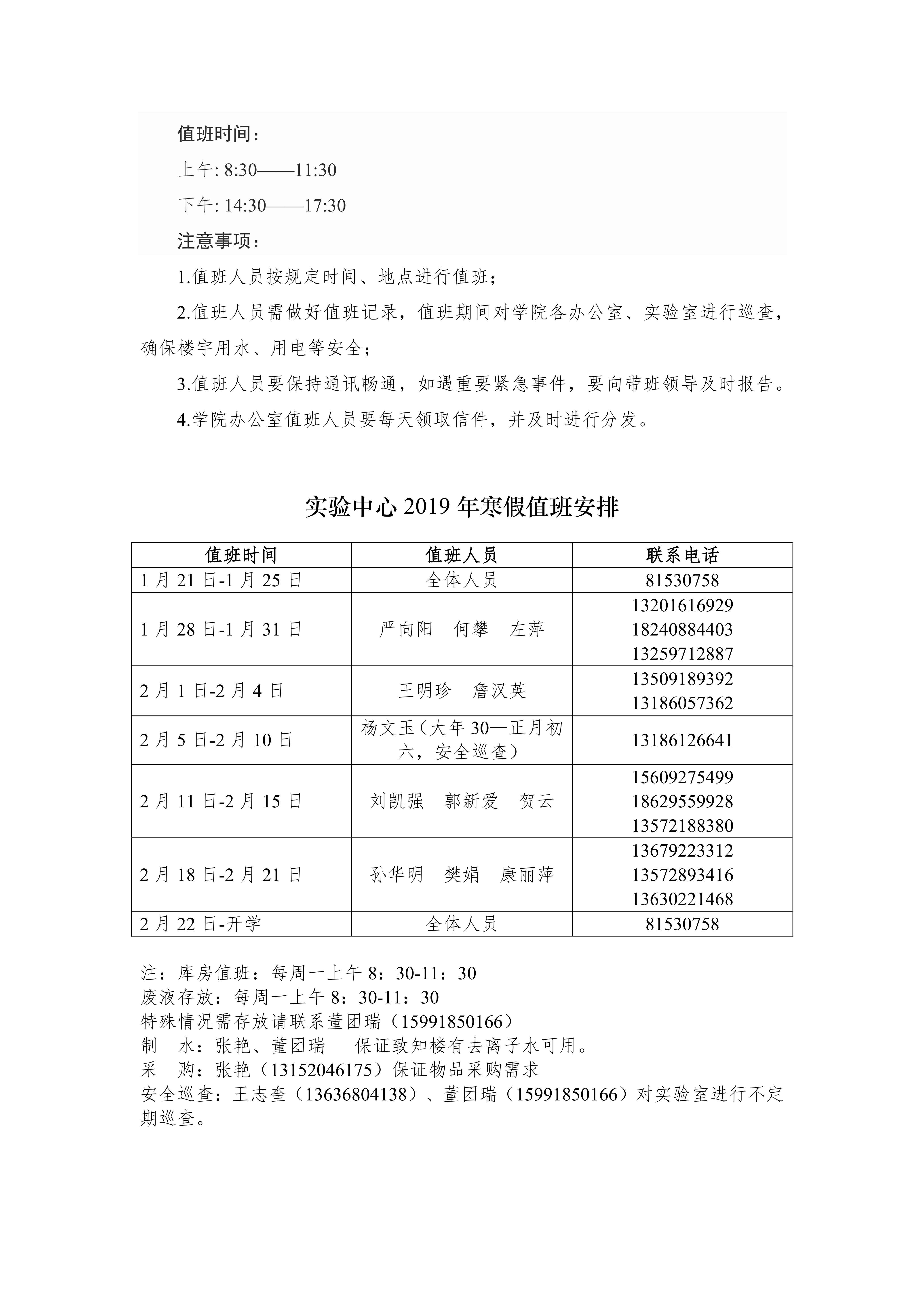拉斯维加斯娱乐城官网 2019年寒假值班安排