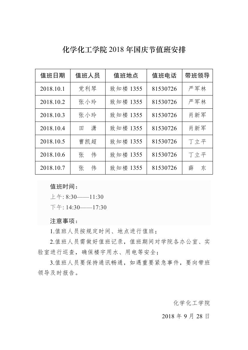 拉斯维加斯娱乐城官网 2018年国庆节值班安排