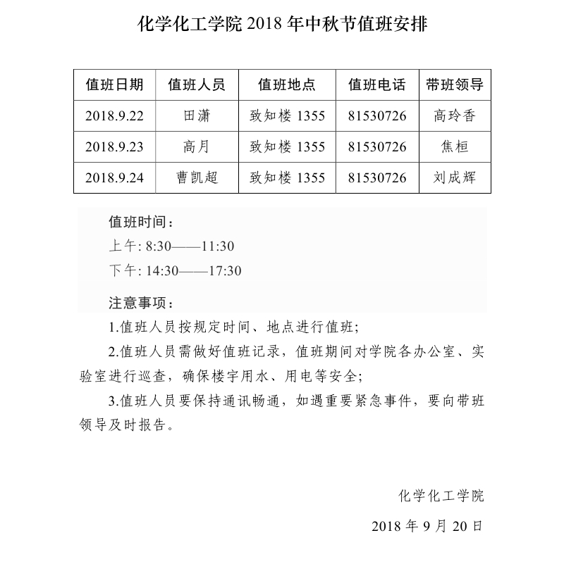 拉斯维加斯娱乐城官网 2018年中秋节值班安排