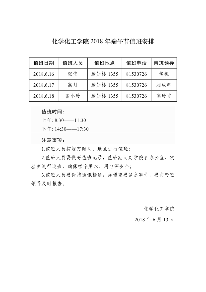 拉斯维加斯娱乐城官网 2018年端午节值班安排