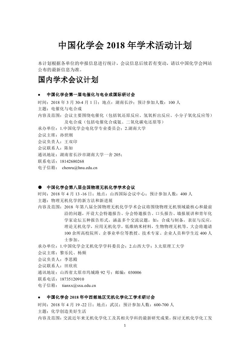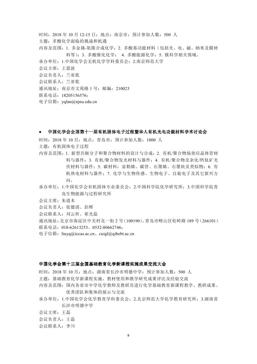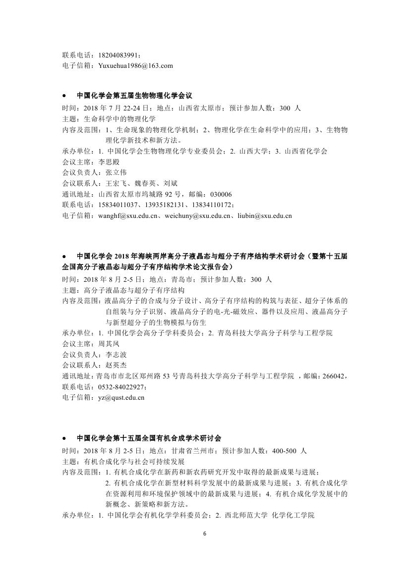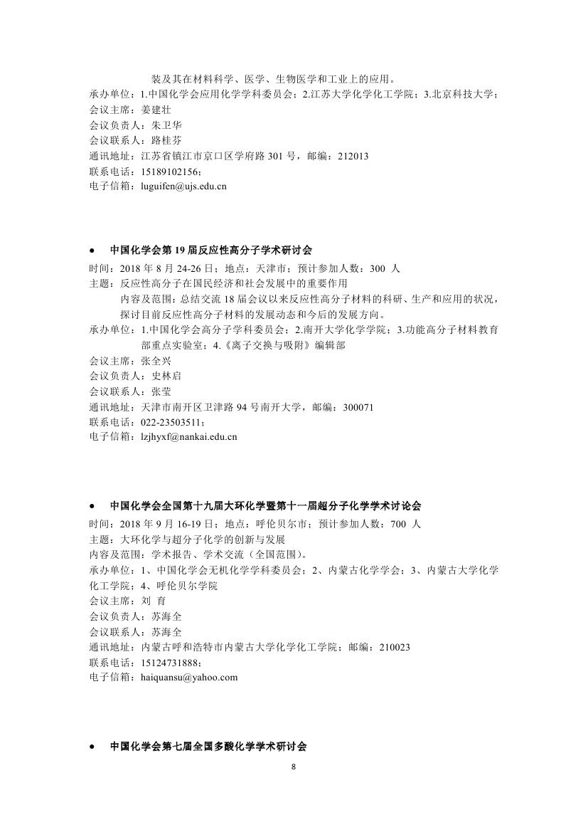 转发:2018年中国化学会会议计划