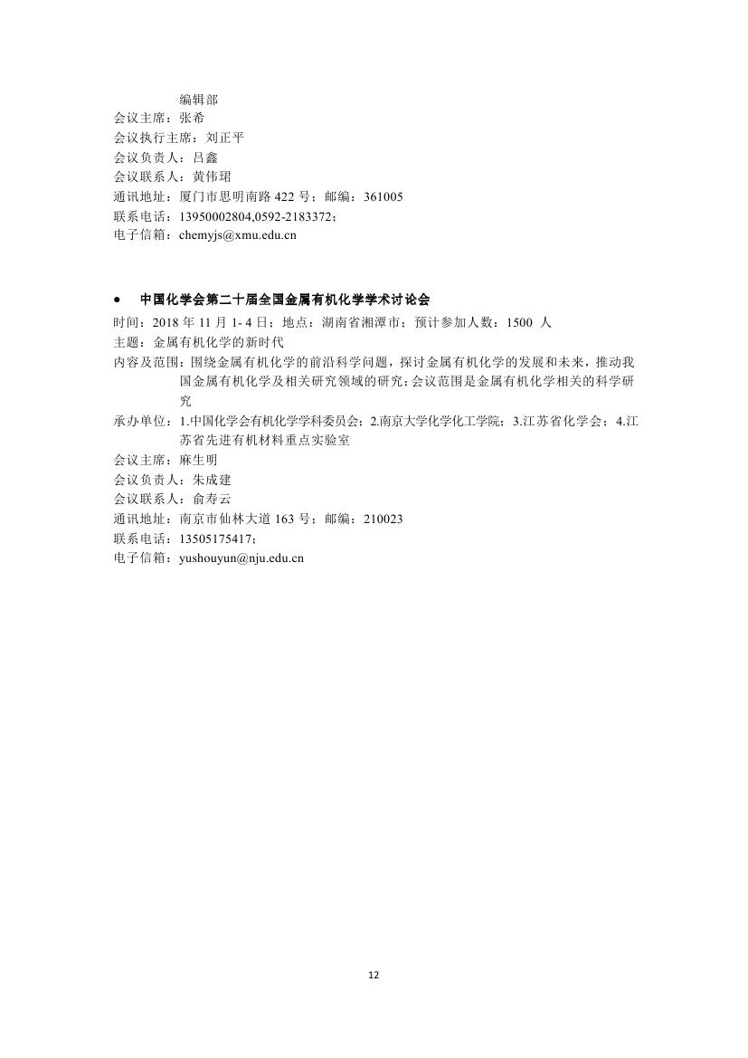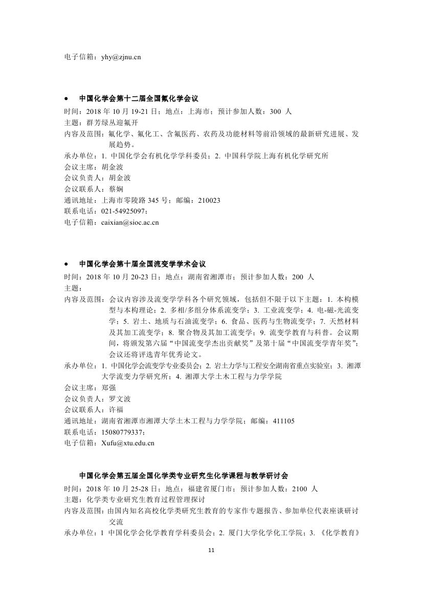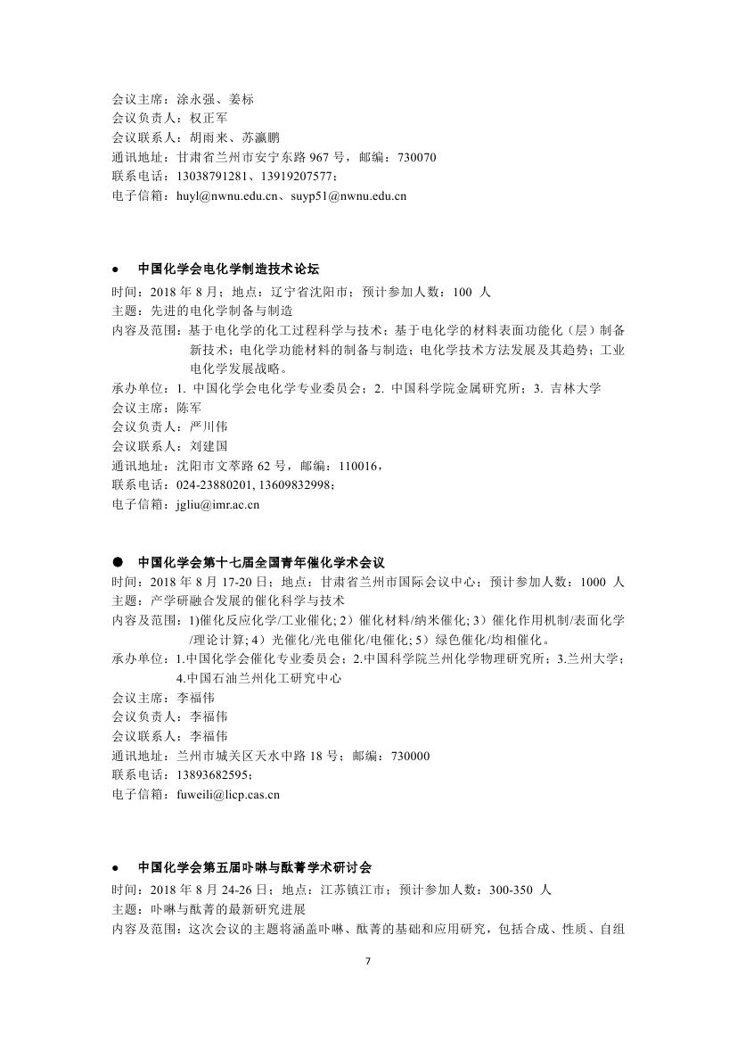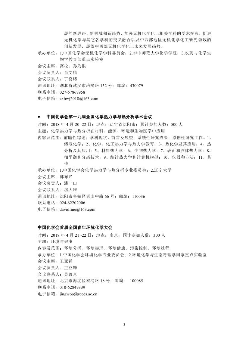 转发:2018年中国化学会会议计划