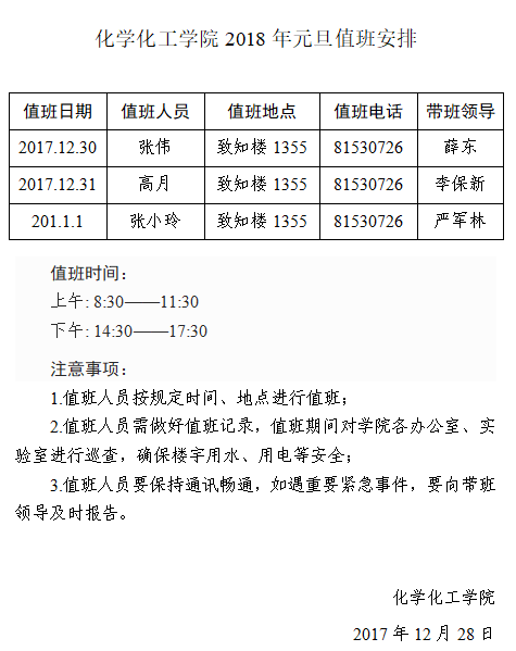 拉斯维加斯娱乐城官网 2018年元旦值班安排