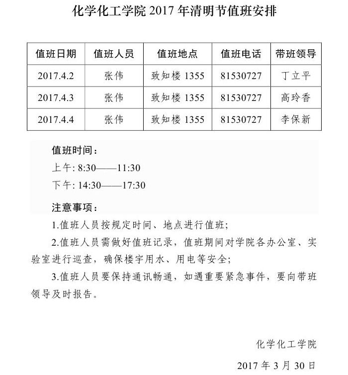 拉斯维加斯娱乐城官网 2017年清明节值班安排