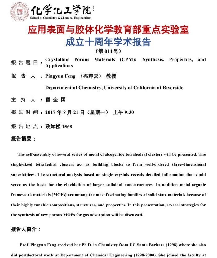 应用表面与胶体化学教育部重点实验室成立十周年学术报告14