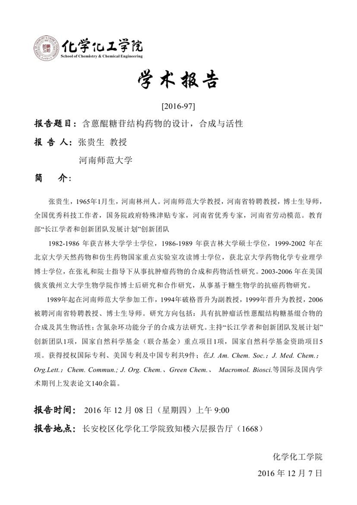 张贵生教授学术报告预告[2016-97]