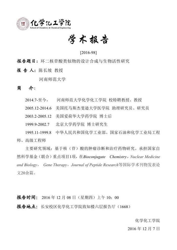 陈长坡教授学术报告预告[2016-98]