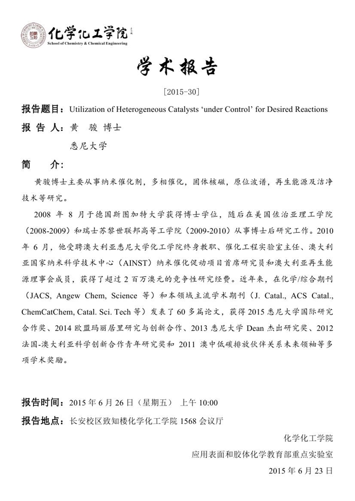 学术报告预告[2015-30]