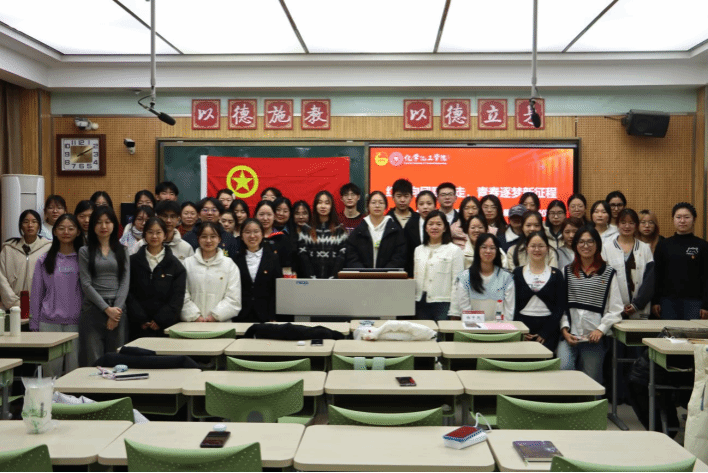 仪式在庄严的国歌声中拉开序幕。李颖介绍本次仪式的目的并宣读新团员名单。在热烈的掌声中,团支部书记、优秀团员代表为新入团团员佩戴团徽。熠熠生辉的团徽象征着责任与使命,新团员们深切感受到共青团组织的光荣与温暖,在薪火相传中增强了凝聚力。
