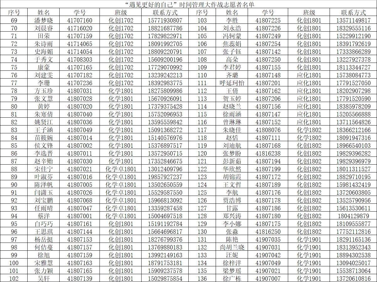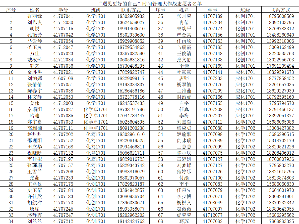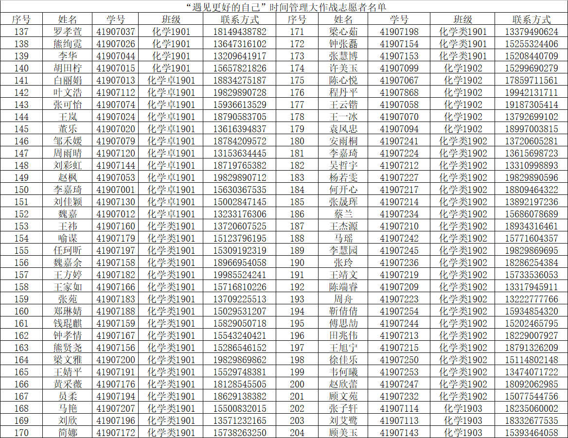 根据《关于公开招募拉斯维加斯娱乐城官网 “遇见更好的自己”时间管理大作战活动志愿者的通知》要求,按照拉斯维加斯娱乐城官网 “遇见更好的自己”时间管理大作战活动志愿者招募条件,通过公开招募、自愿报名、择优录取,拟定张丽缘等204名同学为活动志愿者,现予以公示。