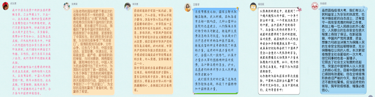 开展了“共抗疫情,爱国力行”线上主题演讲比赛和“战‘疫’·向上的力量”主题征文比赛,团员青年通过铿锵的字句和细腻的笔触,描述了抗“疫”期间一幅又一幅发人深省的画面,表达了自身对民族精神、时代精神和爱国主义精神的深刻理解。