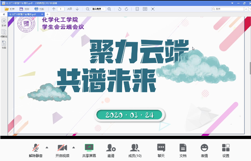 的决策和部署,并在学生群体中做好宣传引导;第二、在线上学习期间,学生干部要以身作则,学好专业知识;第三、集思广益,创新工作思路,策划丰富有益的线上活动,有序推进学生会工作。此次会议不仅激发了学生干部们的工作动力,同时为接下来的工作指明了方向,学生干部们也将认真负责,在这场抗疫攻坚战中坚守学生工作根据地,用不懈努力为化院师生服务,为这场抗疫阻击战贡献青春力量。