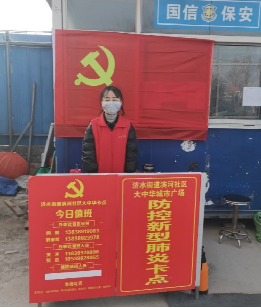 在基层社区志愿服务中,唐琳在济水街道办事处工作人员以及所在小区党员同志的带领下,利用双休时间在大中华小区执勤站岗。虽然工作内容难度不大——测体温,登记来往人员等——但是需要一遍又一遍的劝回小区里想要外出的住户。这份工作的确考量人的耐心,也让她感受到了基层社区工作者工作的不易,向他们致敬。