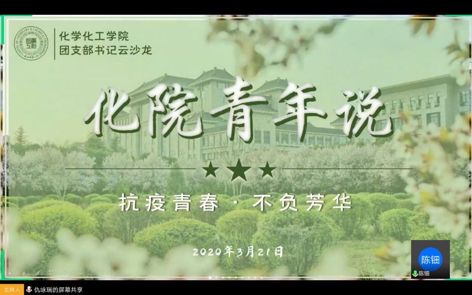 团委通过腾讯会议在线开展了题为“抗疫青春,不负芳华——化院青年说”的团支部书记沙龙。会议由团委书记陈钿主持。拉斯维加斯娱乐城官网