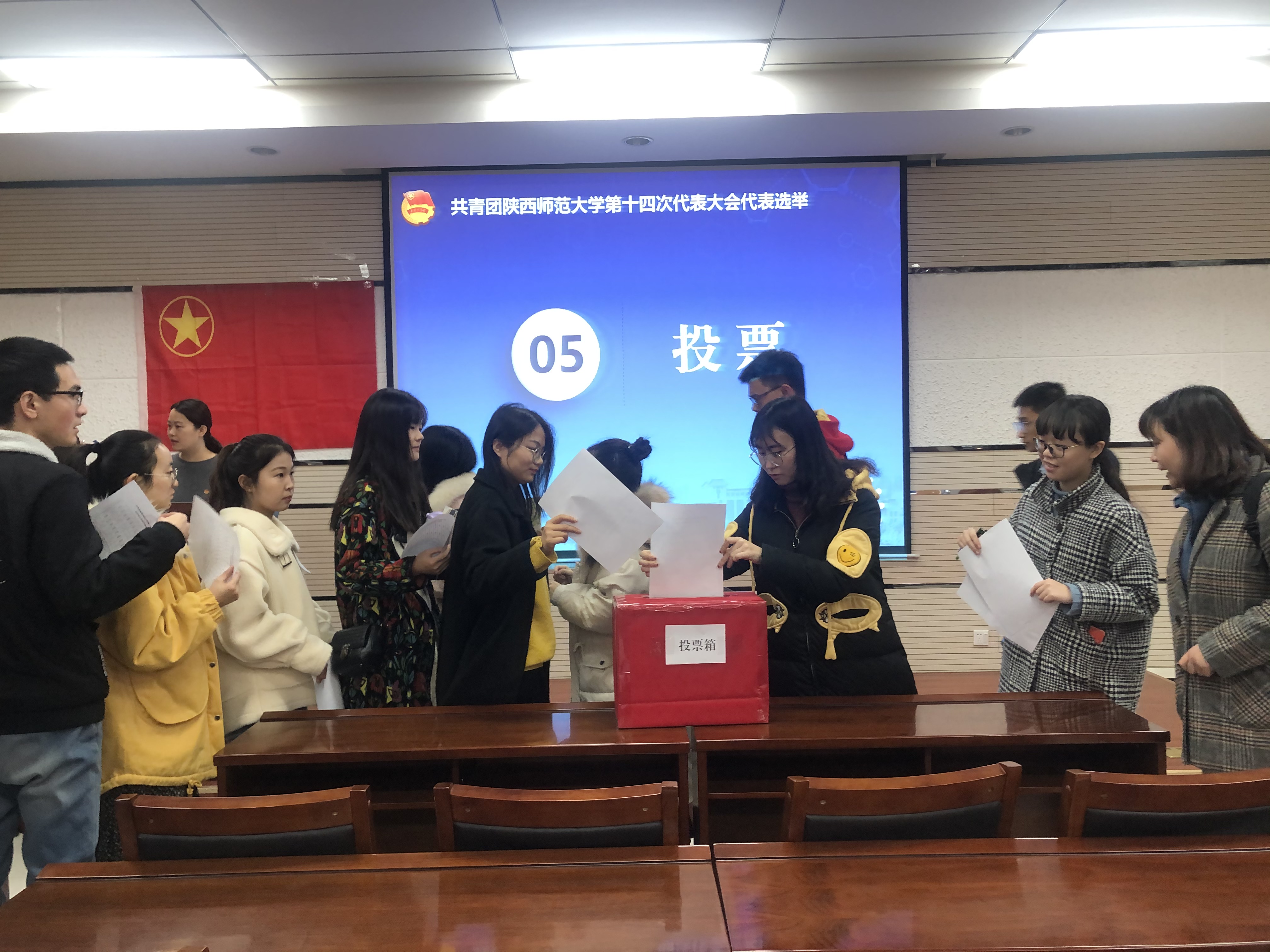 第十四次代表大会代表选举办法》的规定,以无记名投票、差额选举的方式进行了选举。与会团员代表们认真填写选票,有序地将神圣的选票投入投票箱中,庄严地行使各自的选举权。投票结束后,监票人、计票人现场清点选票,加以核对,做出记录。