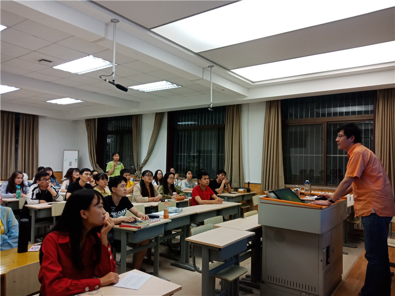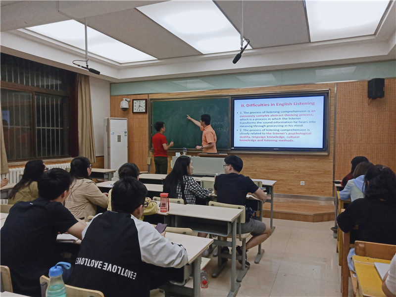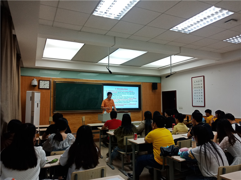 七点十分,活动准时开始。外国语拉斯维加斯娱乐城官网 的郭英杰老师直切主题,直接明了的指出大部分同学在英语听力方面存在的问题,并用一首诗向同学们诠释学习三境界,在此境界中提出了存在问题对应的解决方法,提倡同学采取渐进式、鼓励式坚持练习听力,“念念不忘必有回响”。老师还为同学推荐了最基础的练习听与“写”的歌曲与电影。