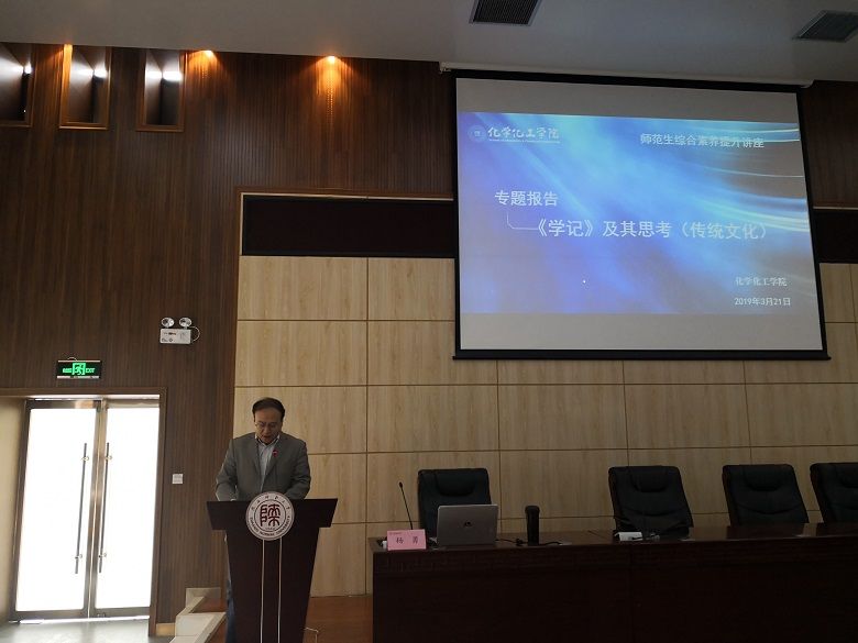 讲座伊始,杨老师从中国传统文化逐渐流失的现状谈起,阐述了传统文化传承的意义,强调了《学记》在我国教育领域的重要性。