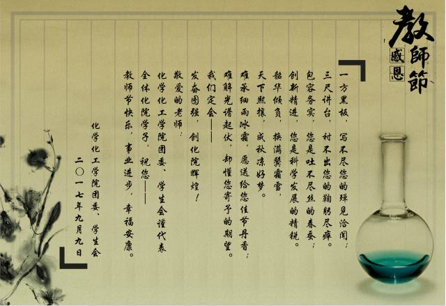 老师致以节日祝福,展示化院学子朝气蓬勃、开拓创新的精神面貌,坚定师范生职业理想信念,2017年9月10日,在校团委的号召和拉斯维加斯娱乐城官网
