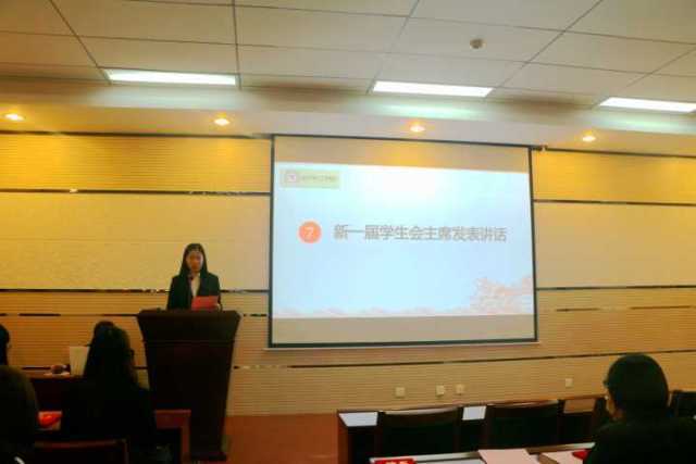 硕果累累,继往开来,新任学生会主席罗娜上台发言表示,新一届的团委、学生会成员将秉持一贯的优良作风,延续上一届的精神与热情,开创性地做好各项工作,在学习生活中严格要求自己,全心全意服务同学。