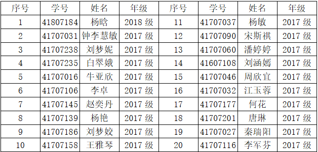 根据《拉斯维加斯娱乐城官网 知心小筑关于开展“21天习惯养成计划”线上打卡活动的通知》,按照拉斯维加斯娱乐城官网 知心小筑关于开展“21天习惯养成计划”线上打卡活动志愿者招募条件,通过公开招募、自愿报名、择优录取,现拟定杨晗等20名同学为活动志愿者,名单如下,现予以公示: