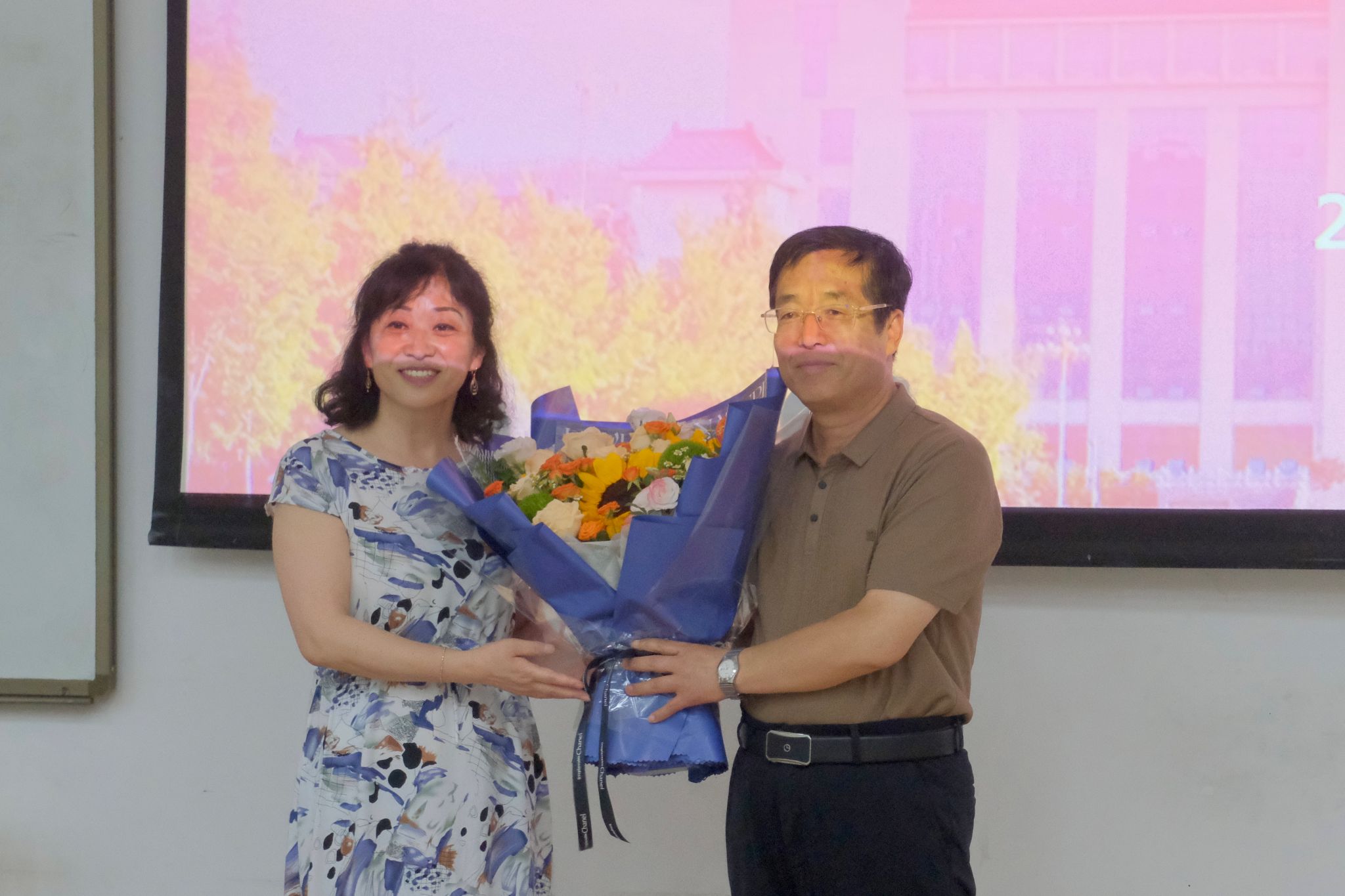 献花,向王青岗老师致以热烈欢迎和诚挚感谢。