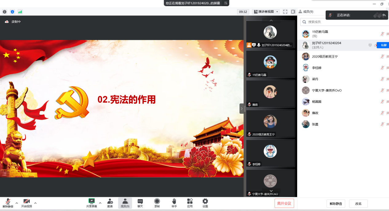12月7日晚,历史系本科生党支部开展了“《宪法》学习-建设法治中国,实现伟大复兴”的专题学习会。支部组织委员刘子轩同志主持,首先带领支部成员学习了《宪法》。通过学习,支部成员更加明确,《宪法》是规定国家根本制度和根本任务、集中体现各种政治力量对比关系、保障公民基本权利的根本大法。