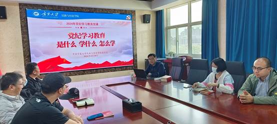 学习会强调,开展党纪学习教育是以习近平同志为核心的党中央作出的重大决策部署,是加强党的纪律建设,推动全面从严治党向纵深发展的重要举措,各党支部和广大党员教师要提高政治站位,认真学习领会,主动对标,坚决把思想和行动统一到党中央决策部署上来。要以习近平新时代中国特色社会主义思想为指导,准确把握开展党纪学习教育的目标要求,进一步强化纪律意识、加强自我约束,增强政治定力、纪律定力、道德定力、抵腐定力,始终做到忠诚干净担当。要通过个人自学与集中学习相结合,理论学习中心组、支委会、党小组、读书班、党员学习会等方式,逐章逐条学习新修订的《中国共产党纪律处分条例》,切实做到学懂弄通、熟练掌握。要以案促学,开展好警示教育,用好以案说纪、以案说法、以案说责 “活教材”。要注重贯通融合,把党纪学习教育和党性教育、廉政教育、师德师风建设、“四风”顽瘴痼疾专项整治统筹起来一体推进、一起抓,把党的纪律转化为党员干部的日常习惯和自觉遵循,使党纪学习教育成为促进 拉斯维加斯娱乐城官网 学科建设、教学科研高质量发展的有效举措。