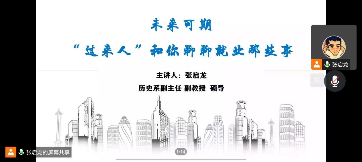历史系副主任、硕士生导师张启龙老师主讲,2023届全体毕业生、其他年级本科生以及研究生参会。