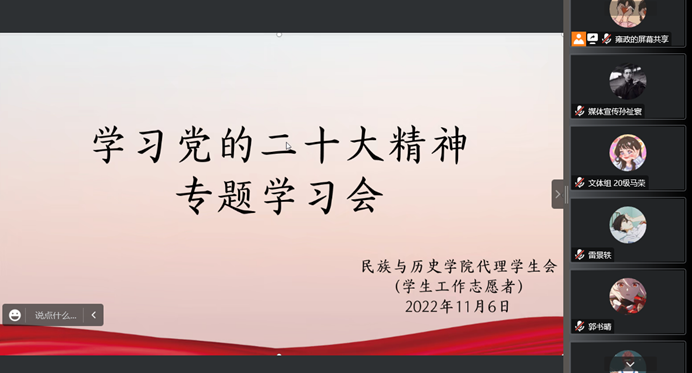 代理学生会(学生工作志愿者)开展了学习党的二十大精神专题学习会。