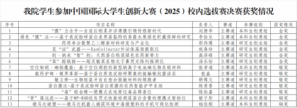 为深入落实习近平总书记关于教育的重要论述和习近平总书记给中国国际大学生创新大赛参赛学生代表的回信精神,提升大学生创新创能力、培养大学生创新创业素养,拉斯维加斯娱乐城官网 于3月至5月成功举办中国国际大学生创新大赛(2025)校内选拔赛。