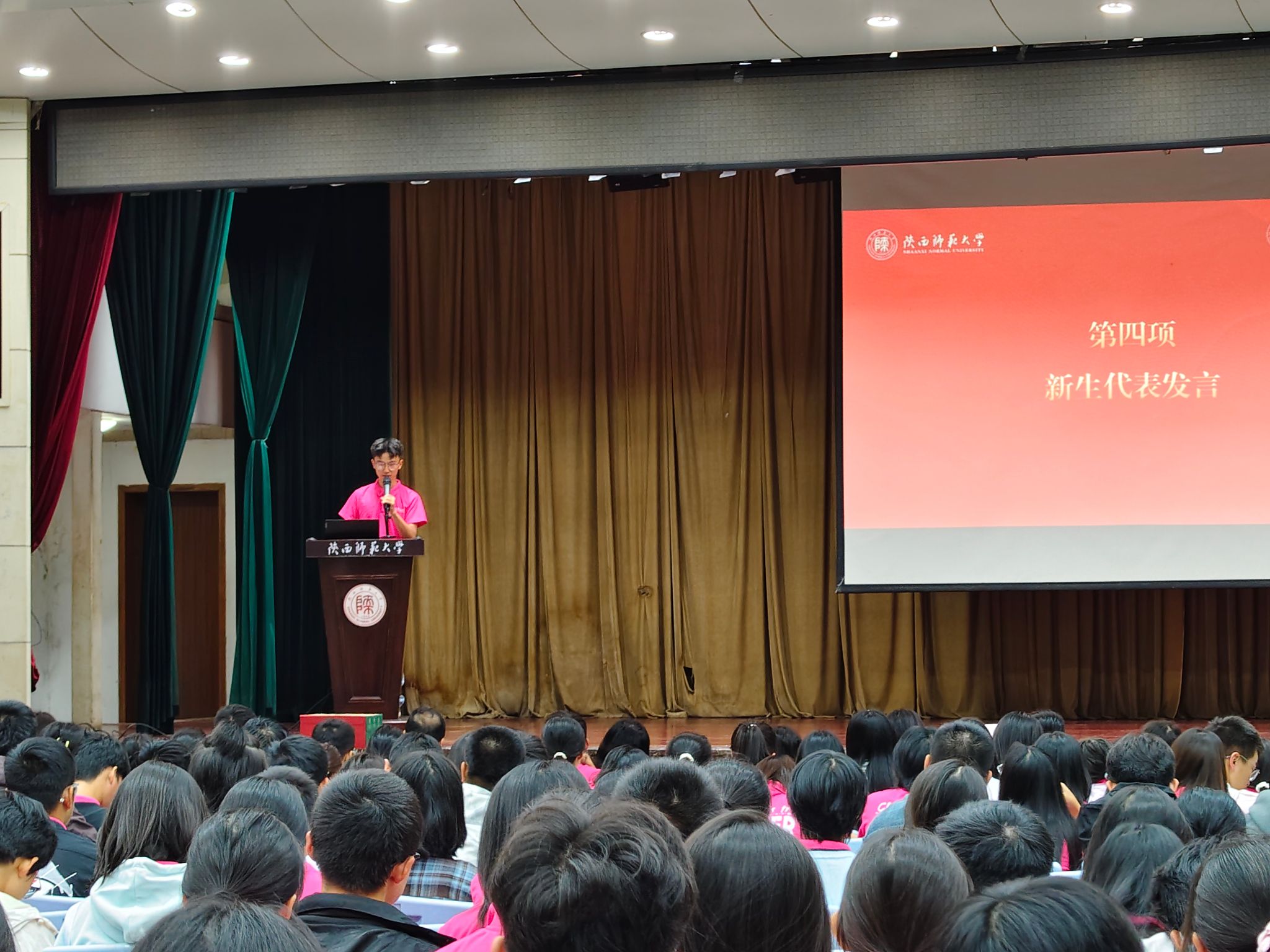 2022级笃学班李梓菖作为在校生代表发言,他分享了个人勤勉求学的经历,鼓励新生以恒心深耕学业,坚守“人民教师,无上光荣”初心,传承“西部红烛,两代师表”精神。