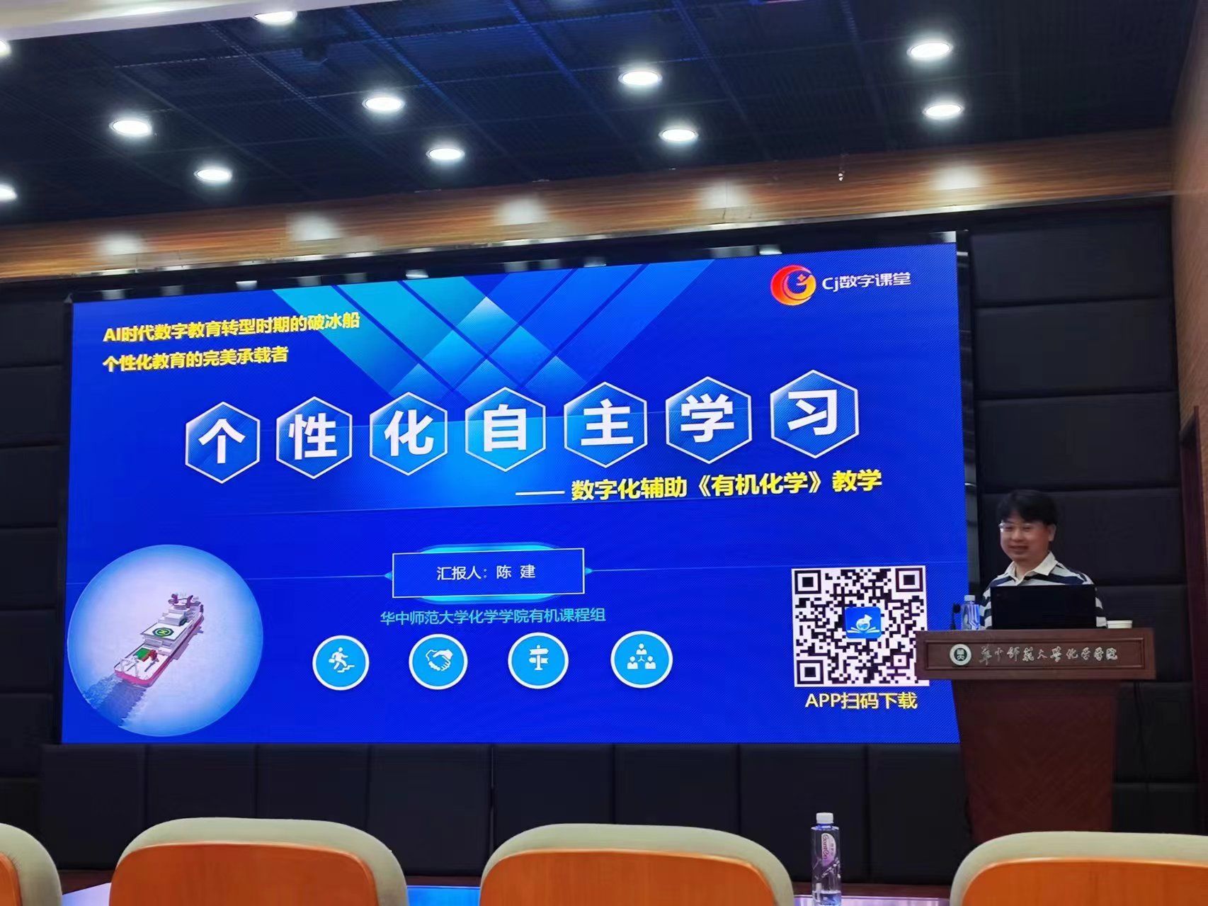 万坚教授和原弘教授的主持下,南京大学谢代前教授在华中师范大学逸夫化学楼为同学们进行了以“气相小分子间碰撞传能的量子动力学与冷分子化学”为题的精彩报告,介绍了分子间传能动力学超冷分子反应的量子动力学背景和实际应用,让同学们对相关研究领域有了进一步了解。随后,饶立副教授和陈建副教授分别针对“《结构化学》课程教学研究与实践” “《有机化学》数字化辅助下的个性化自主学习模式”两项课题开展了专题讲座,为同学们梳理了课程内容,拓展数字化教学新思路,给同学们带来了很大的启发。在最后的交流阶段,同学们积极提出自己的见解和疑惑,也在教授们的解答中更加明晰了解决部分教学难题的可行方案。