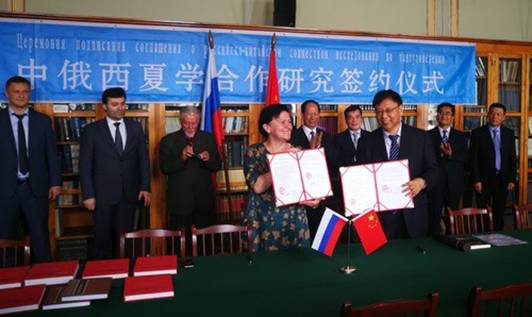 东方文献研究所签订协议,成立中俄人文合作交流机制下研究机构——中俄西夏学联合研究所,杜建录教授任中方所长,波波娃教授任俄方所长。8年来双方在西夏文法律文献、黑水城出土汉文社会文书等领域开展研究,出版系列成果,举办5届西夏学国际学术论坛。根据教育部批准的合作研究计划,2018年开始,将围绕俄藏西夏文诗歌谚语、夏译汉文典籍、西夏文类书、俄藏黑水城文物以及中国新发现西夏文献文物开展研究,继续举办国际学术论坛,出版合作研究成果。