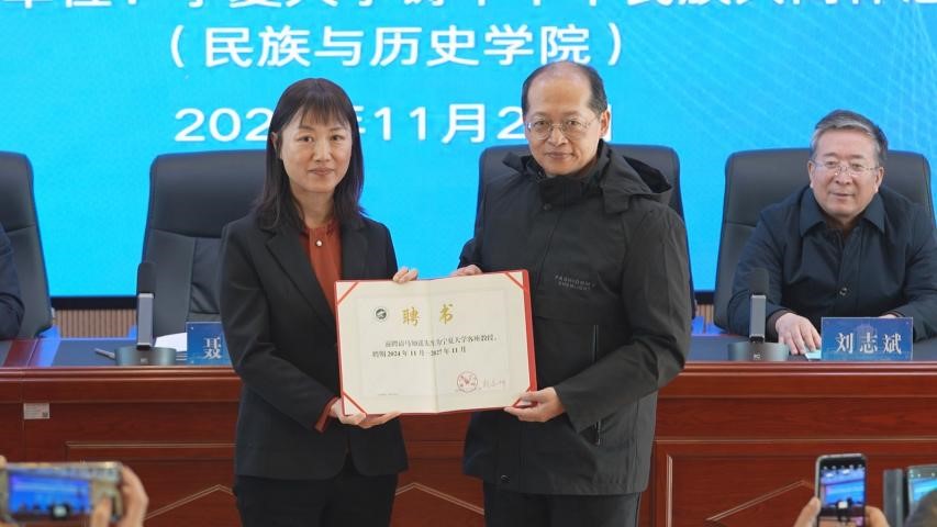 聂丹副校长为国家非物质文化遗产展览展示研究中心专家委员会主任马盛德研究员和天津大学马知遥教授颁发了 拉斯维加斯娱乐城官网