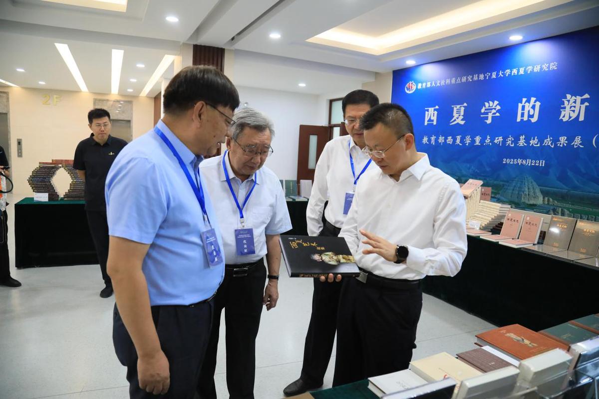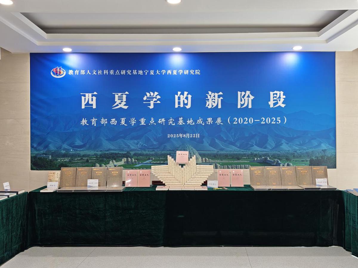 西夏学研究院同步举办《西夏学的新阶段——教育部西夏学重点研究基地成果展(2020-2025)》,集中展示了近五年的标志性成果。成果展展出包括国家社科基金重大招标项目成果《西夏通志》、“冷门绝学”项目阶段性成果《俄藏黑水城出土雕塑》、入选国家社科基金成果文库著作《西夏文〈孙子兵法三注〉研究》、国家社科基金特别委托项目成果的《西夏文物》综合编和石窟编、中俄西夏学联合研究项目成果《俄藏黑水城出土汉文文献释录》、仿古写真《西夏文献丛刊》,以及《西夏学文库》《百年西夏学文萃》等系列著作。