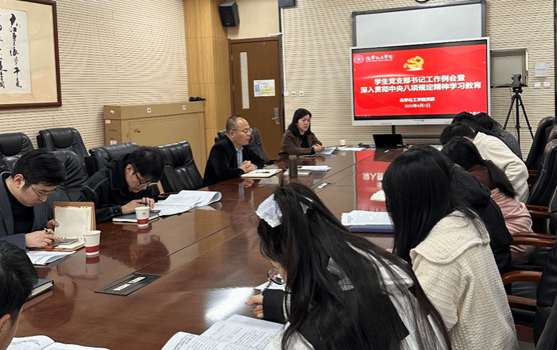 党委在致知楼1362会议室组织召开学生党支部书记工作例会暨深入贯彻中央八项规定精神学习教育专题会。全体学生党支部书记及党务中心工作人员参加。会议由团委书记杨子熙主持。