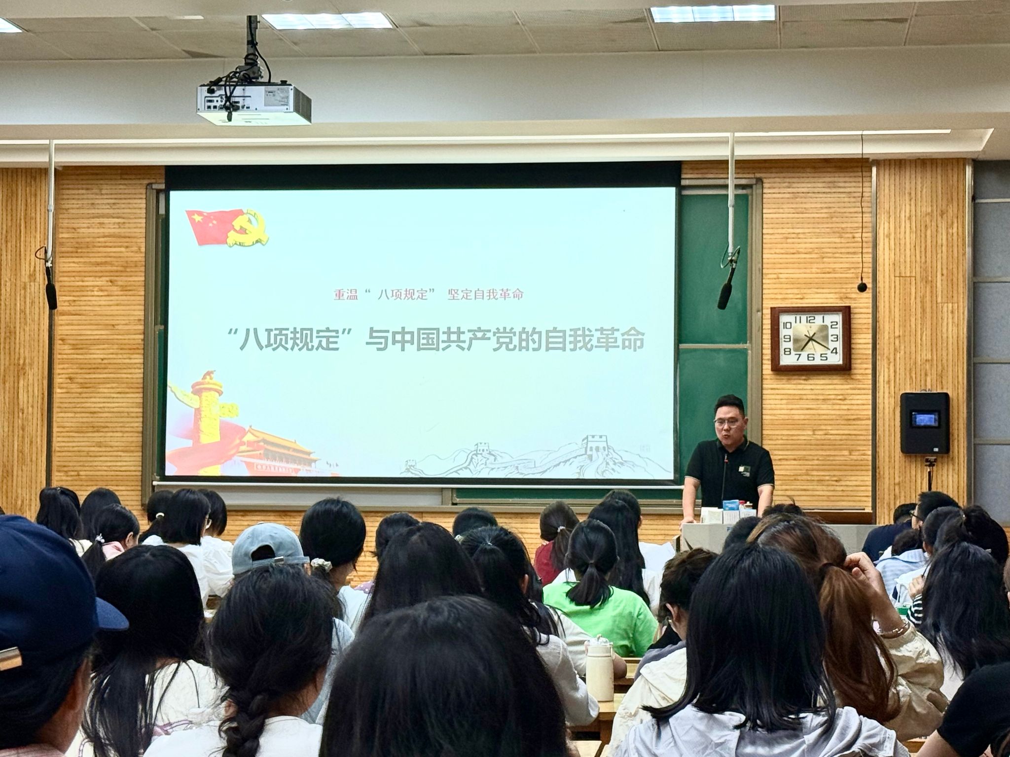 杨永浦、周坤和王立泽老师分别以“党的宗旨、性质和任务”、“识党、入党、爱党、为党”、“弘扬伟大建党精神,争做时代先锋力量”、“坚定理想信念,创造人生意义”和“‘八项规定’与中国共产党的自我革命”为题开展专题报告。