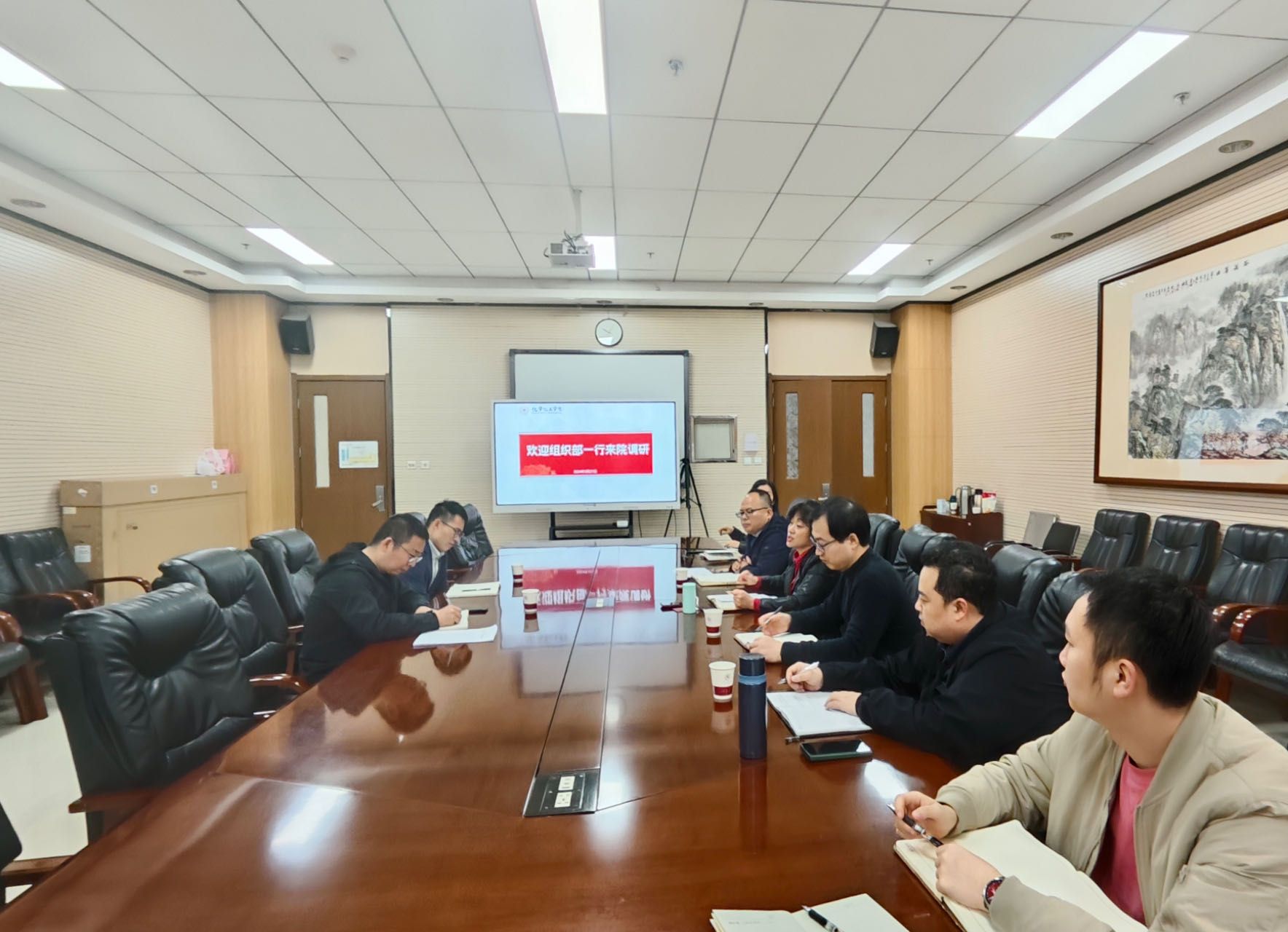 3月27日上午,党委组织部副部长郝鹏展、正科级组织秘书张伟超来拉斯维加斯娱乐城官网 调研党组织基层建设工作。拉斯维加斯娱乐城官网 党委书记高玲香,党委副书记、纪委书记贾颍辉,党政办公室主任张伟,团委书记杨子熙,以及教师党支部书记代表和学生党支部书记代表参加调研座谈。