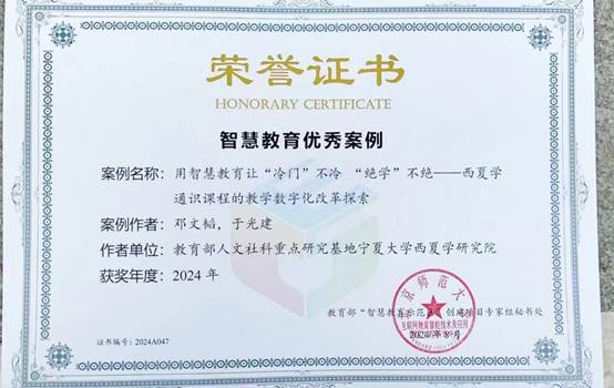 本科生院报送的《以智慧教育让“冷门”不能“绝学”不绝——西夏学通识课程的教学数字化改革探索》成功入选本年度智慧教育优秀案例。