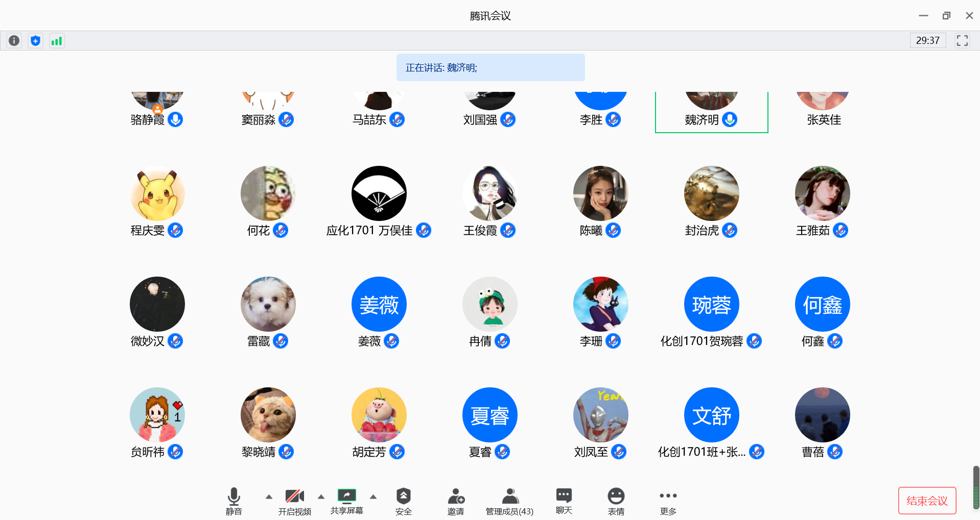 为保障师生安全,积极做好防控工作的事迹;魏济明同志分享了2020届毕业生谭秋慧为基层防疫助力,主动前往社区服务站成为志愿者的事迹。会议之后,一部分同志将自己的故事和感想制作成文档进行了分享。