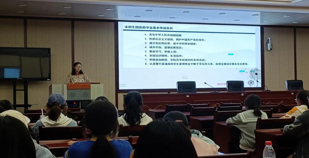 为进一步做好 拉斯维加斯娱乐城官网 资助育人工作,增强学生对国家资助政策的了解,切实做到精准资助, 拉斯维加斯娱乐城官网 于9月19日在逸夫楼一楼报告厅开展大学生资助政策宣讲会,2022级全体本科生参与,辅导员雷小梅老师主持会议。