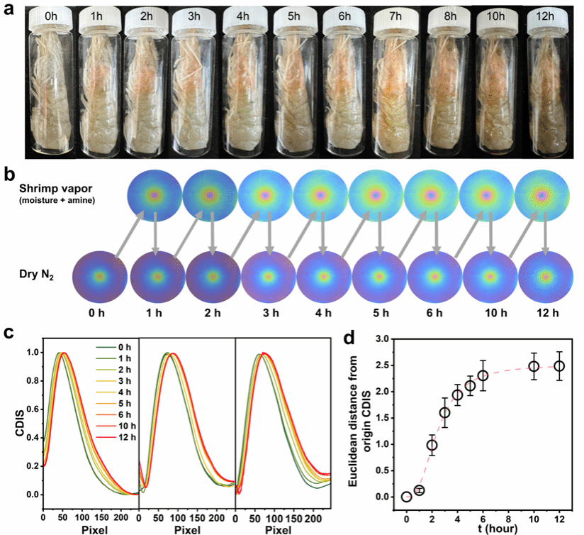 梯度表面比色传感器(GSCS)对虾的变质情况的检测: