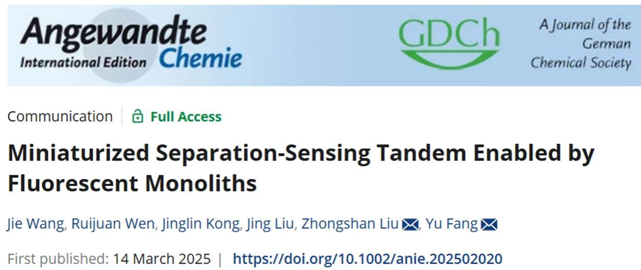 小结:这项研究是首次使用荧光整体材料来实现分离-传感串联。本研究证明,分离传感平台实现了在纳克水平上对BTX或BTE的区分传感。显然,该分离传感平台是建立在成功构建具有多级孔和可调节光物理行为的荧光整体材料的基础上的。该工作不仅为新型传感介质的制备提供了新思路,我们对分离和传感器串联的研究结果还为生产便携式设备提供了良好的基础,使现场环境分析、食品安全监测和药物检测等实际应用成为可能。