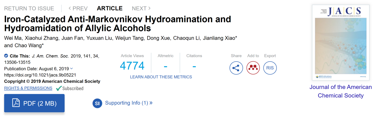 博士马威为第一作者(J. Am. Chem. Soc. 2019, 141, 13506-13515, DOI: 10.1021/jacs.9b05221)。